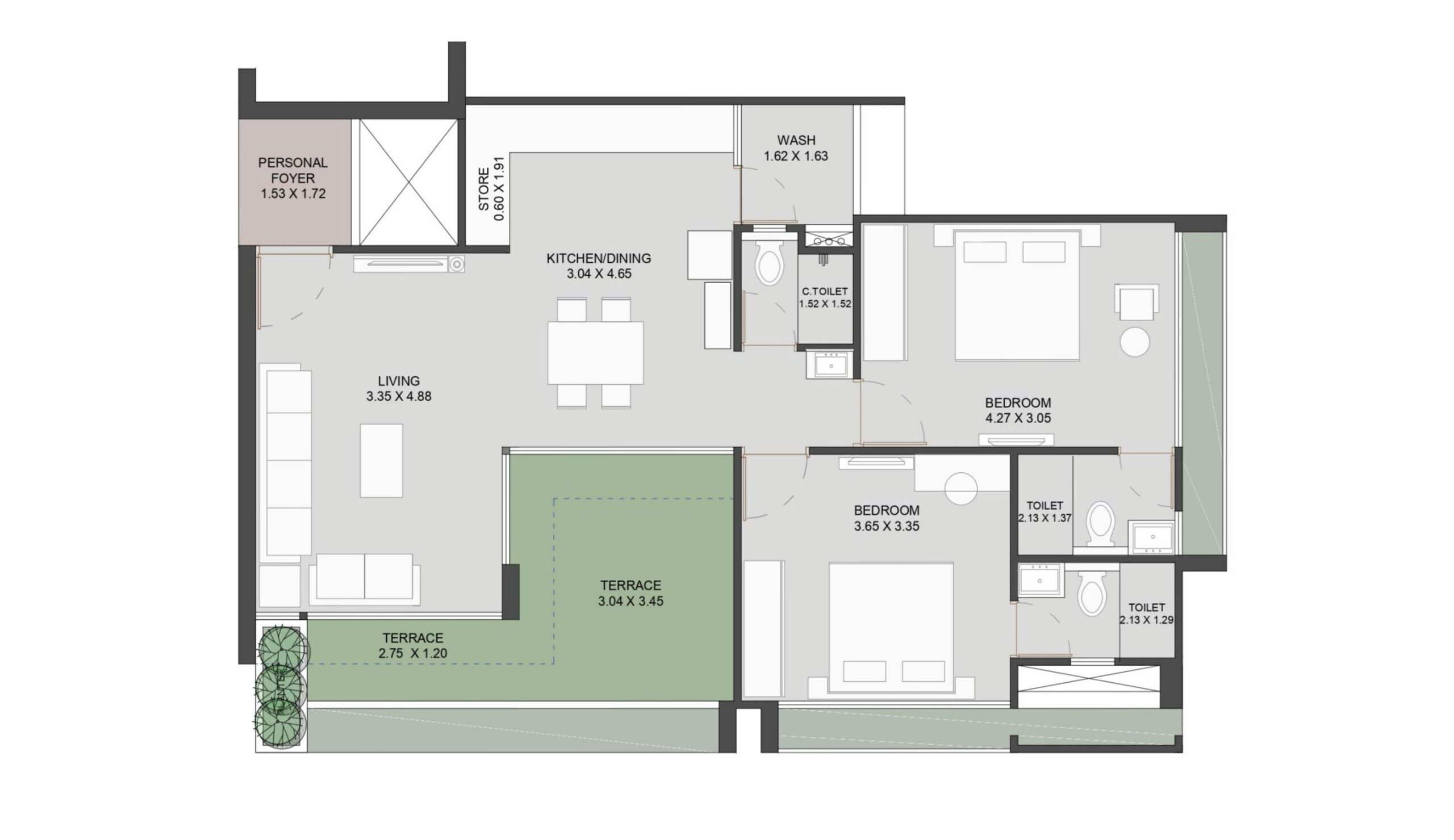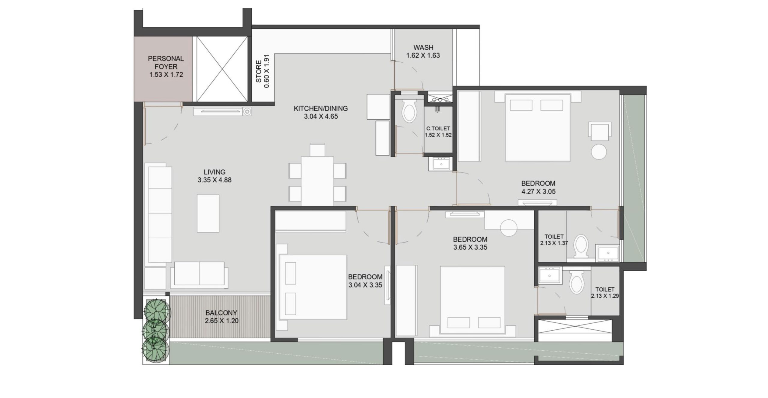 - 3 BHK UNIT PLAN